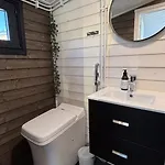 Tunnelmallinen Ja Ihana Mokki设有1间浴室并配备坐浴盆,步入式淋浴间 和独立卫生间.